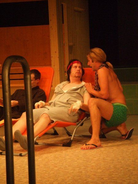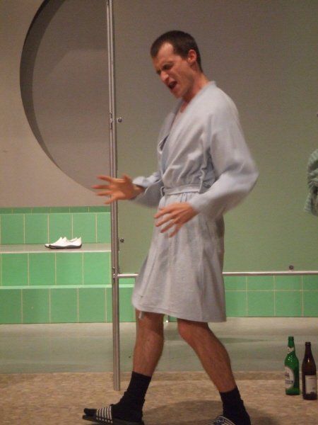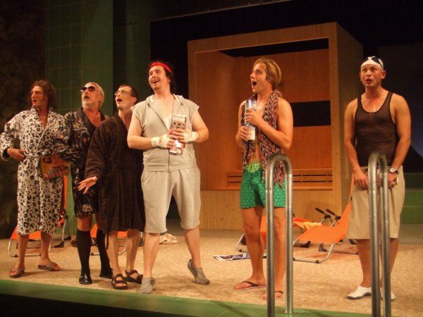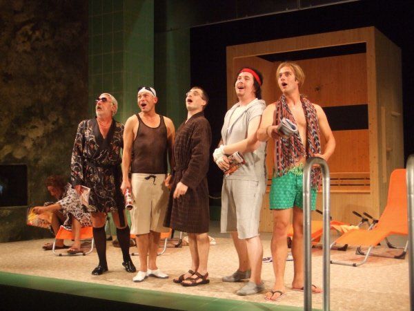 Director Krug celebrated a lot of fun with Messrs. Arpe, Burkia, Firit, Sachse, Teigel, Wolf and Verena Blankenburg as a female operatic encore. The men, originally in the south stand of a football stadium whispering, singing and bawling, were transported here to a sauna area (equipment: Steigert). (...) The wondrous musical purr with a sensitive theater bandmaster Thomas Voigt on the keyboard instrument captivated those who were willing to hear how accents can be shifted, how great normal actors in Rudolstadt can sing, like songs from a funny van Dannen or Sven Regener and "A Little Nymphomaniac" leads to the flat ground of male rituals. The Rudolstadt theatergoers were enthusiastic about these cover versions, which were not a copy of what had been heard a thousand times, and won encores.